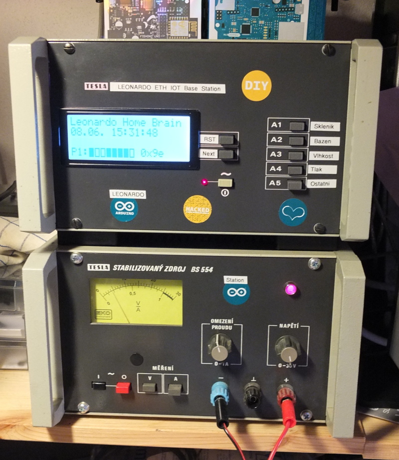 For displaying measured values without PC or tablet I made simple station with Arduino LEONARDO ETH and 20*4 LCD display. It's housed in old box with power supply. There are five front panel buttons, that I use for choosing values to be displayed. Here is source code, developed using Arduino IDE.